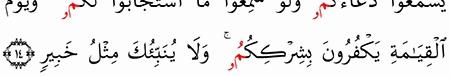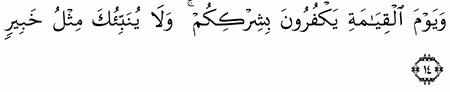 الآية رقم {14} من سورة ( فاطر)