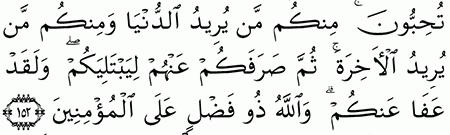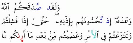 الآية رقم {152} من سورة ( آل عمران)