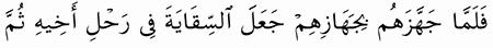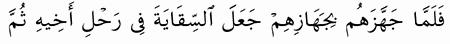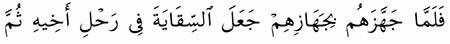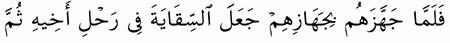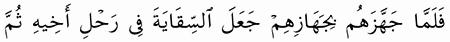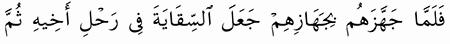 الآية رقم {70} من سورة ( يوسف)